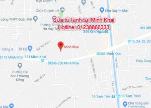 Đội ngũ thợ Sửa tủ lạnh tại Minh Khai hoạt động hàng ngày trên các cung đường và tuyến phố sau : 8-3, Bà Triệu, Bạch Đằng, Bạch Mai, Bùi Ngọc Dương, Bùi Thị Xuân, Cảm Hội, Cao Đạt, Chùa Vua, Đại Cồ Việt, Đại La, Đỗ Hành, Đỗ Ngọc Du, Đoàn Trần Nghiệp, Đội Cung, Đống Mác, Đồng Nhân, Dương Văn Bé, Giải Phóng, Hàn Thuyên, Hàng Chuối, Hồ Xuân Hương, Hoa Lư, Hòa Mã, Hoàng Mai, Hồng Mai, Huế, Hương Viên, Kim Ngưu, Lạc Nghiệp, Lạc Trung, Lãng Yên, Lê Đại Hành, Lê Duẩn, Lê Gia Đỉnh, Lê Ngọc Hân, Lê Quý Đôn, Lê Thanh Nghị, Lê Văn Hưu, Lò Đúc, Lương Yên, Mạc Thị Bưởi, Mai Hắc Đế, Minh Khai, Ngô Thì Nhậm, Nguyễn An Ninh, Nguyễn Bỉnh Khiêm, Nguyễn Cao, Nguyễn Công Trứ, Nguyễn Đình Chiểu, Nguyễn Du, Nguyễn Hiền, Nguyễn Huy Tự, Nguyễn Khoái…