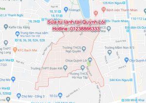 Đội ngũ thợ Sửa tủ lạnh tại Quỳnh Lôi hoạt động hàng ngày trên các cung đường và tuyến phố sau : 8-3, Bà Triệu, Bạch Đằng, Bạch Mai, Bùi Ngọc Dương, Bùi Thị Xuân, Cảm Hội, Cao Đạt, Chùa Vua, Đại Cồ Việt, Đại La, Đỗ Hành, Đỗ Ngọc Du, Đoàn Trần Nghiệp, Đội Cung, Đống Mác, Đồng Nhân, Dương Văn Bé, Giải Phóng, Hàn Thuyên, Hàng Chuối, Hồ Xuân Hương, Hoa Lư, Hòa Mã, Hoàng Mai, Hồng Mai, Huế, Hương Viên, Kim Ngưu, Lạc Nghiệp, Lạc Trung, Lãng Yên, Lê Đại Hành, Lê Duẩn, Lê Gia Đỉnh, Lê Ngọc Hân, Lê Quý Đôn, Lê Thanh Nghị, Lê Văn Hưu, Lò Đúc, Lương Yên, Mạc Thị Bưởi, Mai Hắc Đế, Minh Khai, Ngô Thì Nhậm, Nguyễn An Ninh, Nguyễn Bỉnh Khiêm, Nguyễn Cao, Nguyễn Công Trứ, Nguyễn Đình Chiểu, Nguyễn Du, Nguyễn Hiền, Nguyễn Huy Tự, Nguyễn Khoái…