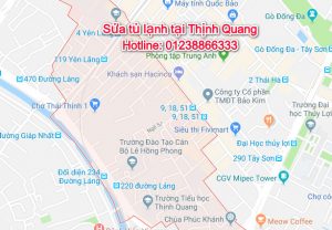 Đội ngũ thợ Sửa tủ lạnh tại Thịnh Quang hoạt động hàng ngày trên các cung đường và tuyến phố sau : An Trạch, Bích Câu, Cát Linh, Cầu Giấy, Cầu Mới, Chợ Khâm Thiên, Chùa Bộc, Chùa Láng, Đặng Tiến Đông, Đặng Trần Côn, Đặng Văn Ngữ, Đào Duy Anh, Đoàn Thị Điểm, Đông Các, Đông Tác, Giải Phóng, Giảng Võ, Hàng Cháo, Hào Nam, Hồ Đắc Di, Hồ Giám, Hoàng Cầu, Hoàng Ngọc Phách, Hoàng Tích Trí, Huỳnh Thúc Kháng, Khâm Thiên, Khương Thượng, Kim Hoa, La Thành, Láng, Láng Hạ, Lê Duẩn, Lương Định Của, Lý Văn Phức, Mai Anh Tuấn, Nam Đồng, Ngô Sĩ Liên, Ngô Tất Tố, Nguyễn Chí Thanh, Nguyên Hồng, Nguyễn Khuyến, Nguyễn Lương Bằng, Nguyễn Như Đổ, Nguyễn Phúc Lai, Nguyễn Thái Học, Nguyễn Trãi.