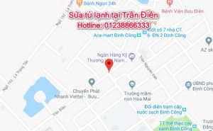 Đội ngũ thợ Sửa tủ lạnh tại Trần Điền hoạt động hàng ngày trên các cung đường và tuyến phố sau : Bằng Liệt, Bùi Huy Bích, Bùi Xương Trạch, Đại Từ, Đặng Xuân Bảng, Định Công, Định Công Hạ, Định Công Thượng, Đông Thiên, Giải Phóng, Giáp Bát, Giáp Nhị, Hoàng Liệt, Hoàng Mai, Hồng Quang, Hưng Phúc, Khuyến Lương, Kim Đồng, Kim Giang, Linh Đàm, Linh Đường, Lĩnh Nam, Lương Khánh Thiện, Mai Động, Nam Dư, Nghiêm Xuân Yêm, Ngọc Hồi, Ngũ Nhạc, Nguyễn An Ninh, Nguyễn Cảnh Dị, Nguyễn Chính, Nguyễn Công Thái, Nguyễn Đức Cảnh, Nguyễn Duy Trinh, Nguyễn Hữu Thọ, Nguyễn Khoái, Nguyễn Xiển, Sở Thượng, Tam Trinh, Tân Mai, Tây Trà, Thanh Đàm, Thanh Lân, Thịnh Liệt, Thúy Lĩnh, Trần Điền, Trần Hòa, Trần Nguyên Đán, Trần Thủ Độ, Trương Định, Tương Mai, Vĩnh Hưng, Vũ Tông Phan, Yên Duyên, Yên Sở.