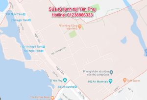 Đội ngũ thợ Sửa tủ lạnh tại Yên Phụ hoạt động hàng ngày trên các cung đường và tuyến phố sau : An Dương Vương, Âu Cơ, Đặng Thai Mai, Hoàng Hoa Thám, Hồng Hà, Hùng Vương, Lạc Long Quân, Mai Xuân Thưởng, Nghi Tàm, Nguyễn Đình Thi, Nguyễn Hoàng Tôn, Nhật Chiêu, Phan Đình Phùng, Phú Gia, Phú Thượng, Phú Xá, Phúc Hoa, Quảng An, Quảng Bá, Quảng Khánh, Tam Đa, Tây Hồ, Thanh Niên, Thượng Thụy, Thụy Khuê, Tô Ngọc Vân, Trích Sài, Trịnh Công Sơn, Từ Hoa, Văn Cao, Vệ Hồ, Võ Chí Công, Võng Thị, Xuân Diệu, Xuân La, Yên Hoa, Yên Phụ.
